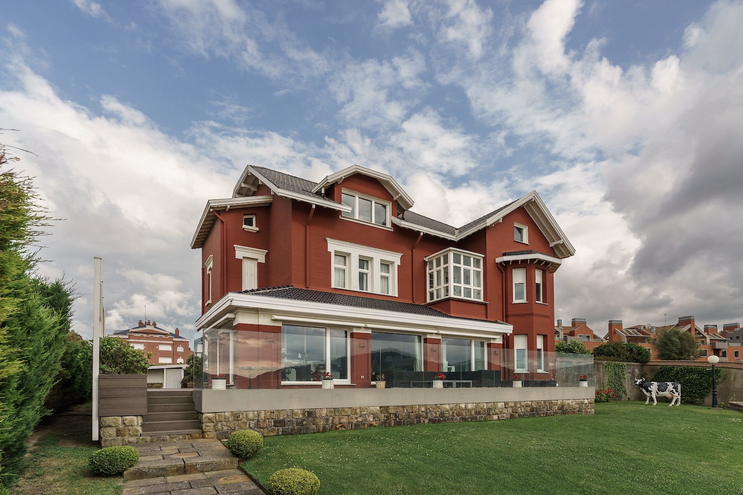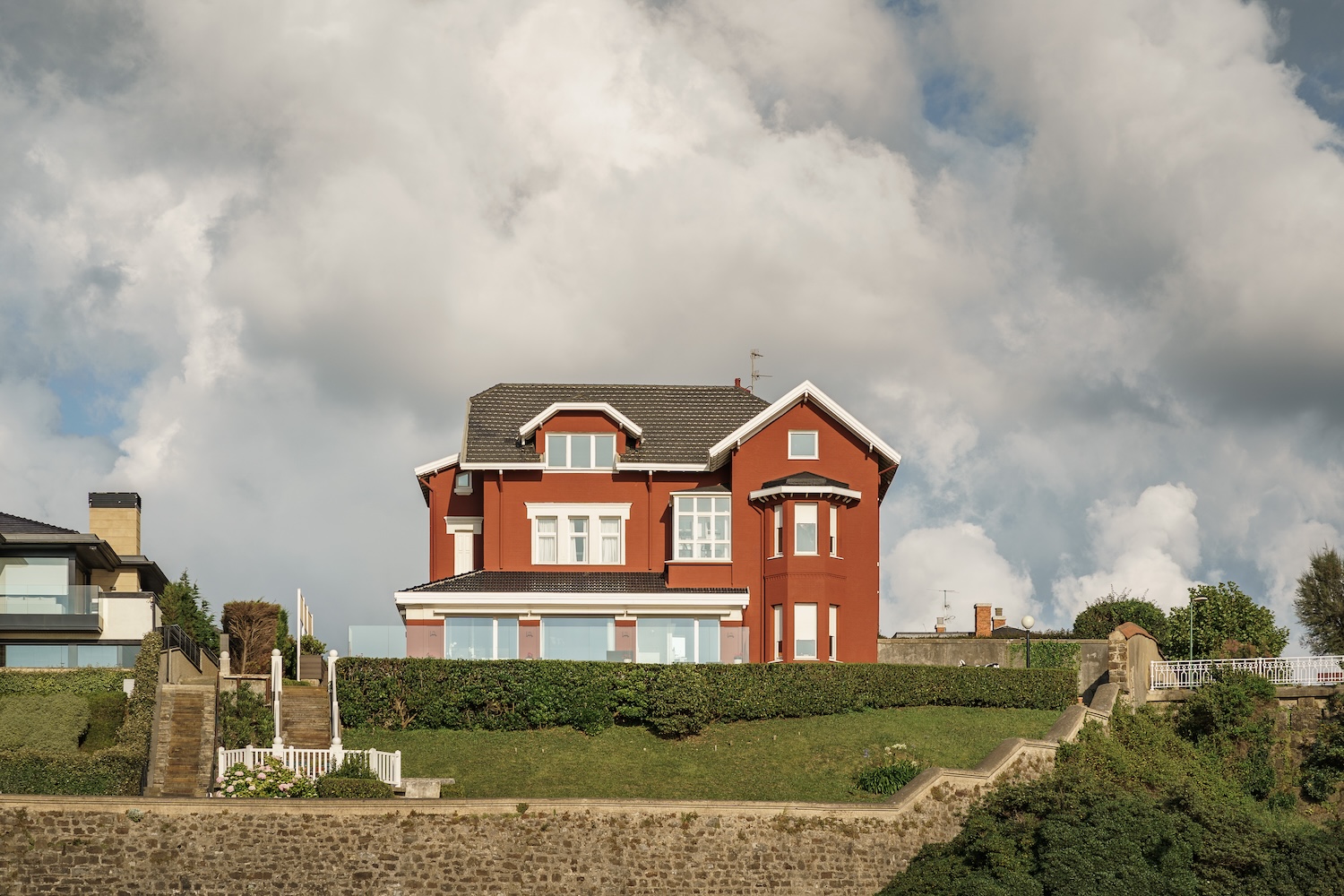 Dominando la playa de Ereaga –y con acceso privado a ella–, se eleva Belrespiro (Atxekolandeta, 20), casa con una historia muy singular. Levantada en 1905 por partida doble –su gemela se derribó con el paso de los años–, imita el hogar en el que residía la familia Larrinaga en Liverpool, hasta el punto de que sus característicos ladrillos rojos se trajeron desde ahí mismo. Los dueños de esta vivienda eran el médico Agustín Soltura Urrutia y Serafina Longa Larrínaga, ella miembro de dos familias de tradición naviera de origen mundaqués asentadas en la ciudad inglesa, que conectaban con sus barcos el Reino Unido con Latinoamérica y Filipinas.