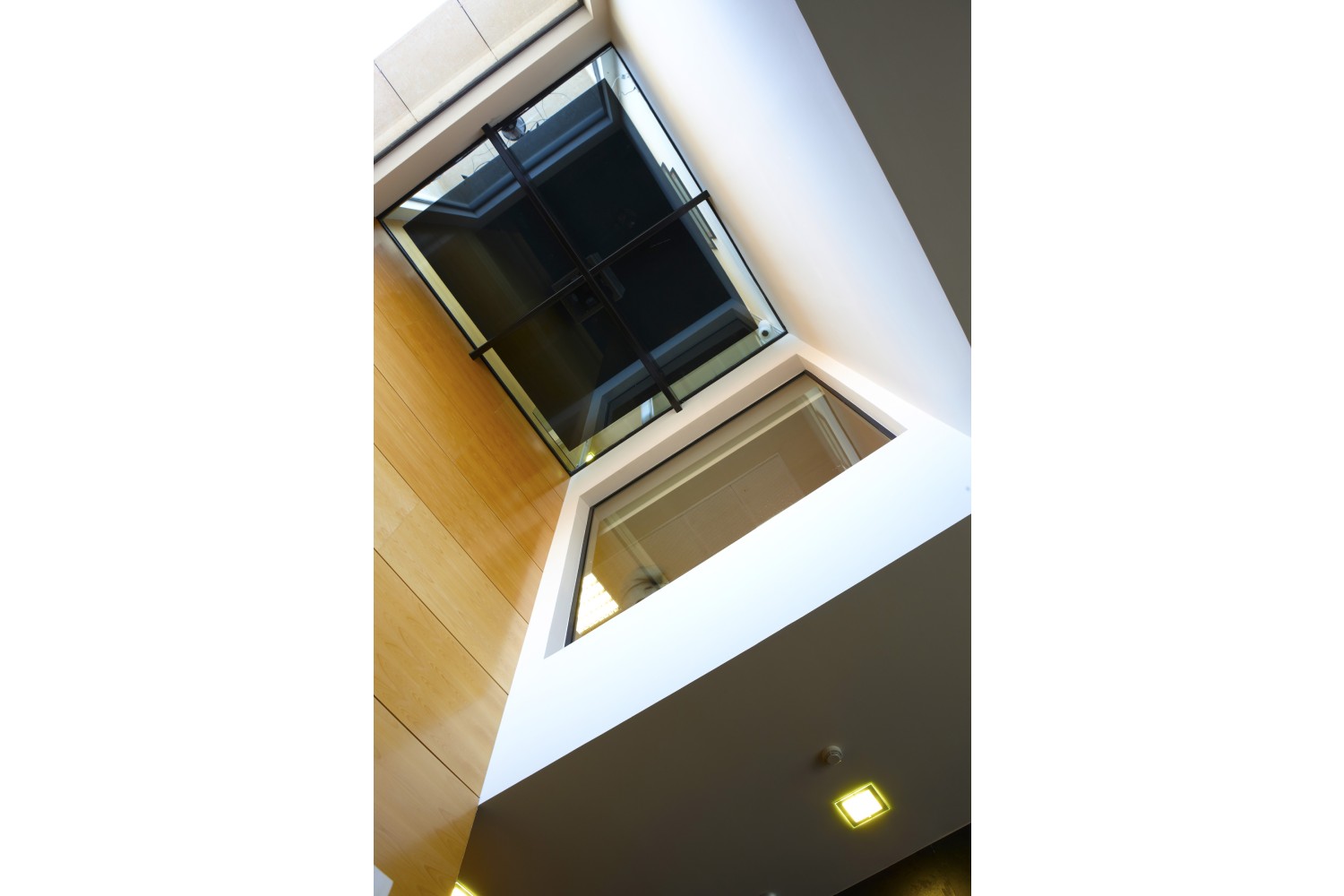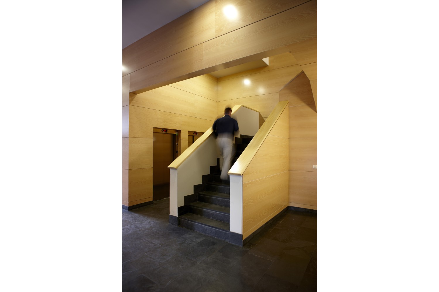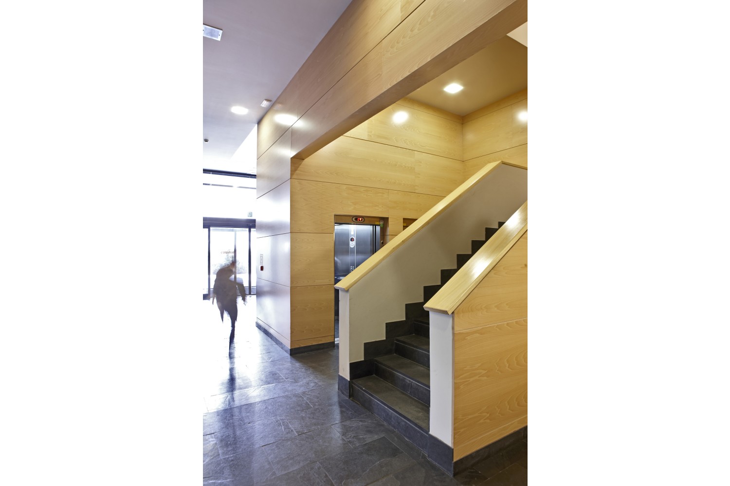En el interior se diseña un gran hueco que comunica todas las plantas. El diseño de las oficinas interiores también corresponde al estudio.