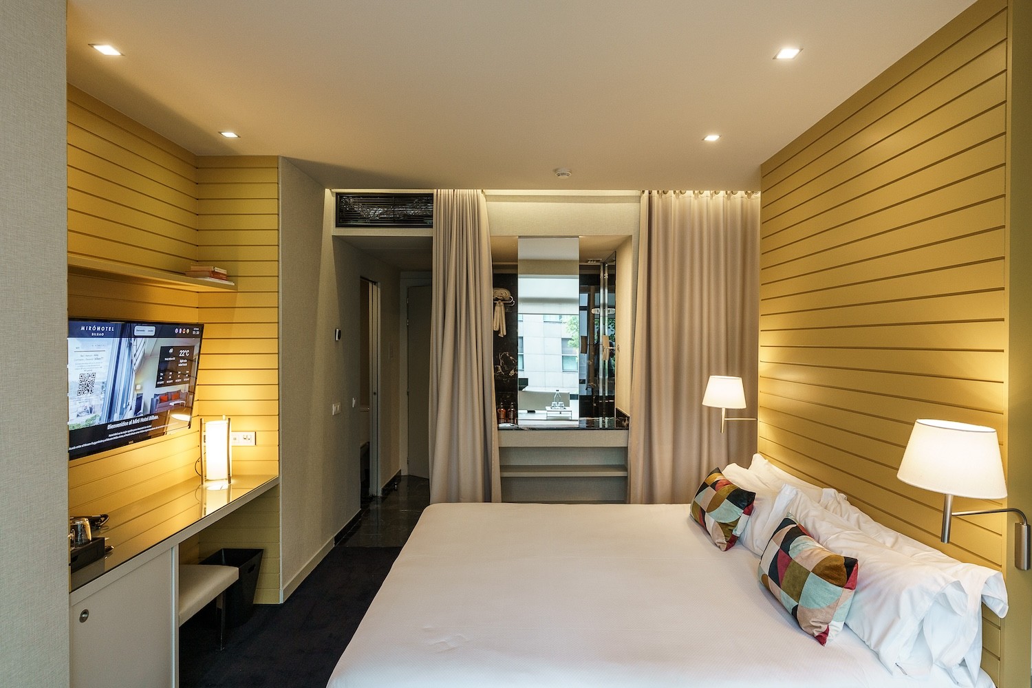 Situado en la calle Mazarredo, a pocos metros del Museo Gugemheim, el hotel Miró fue uno de los representantes del nuevo Bilbao, del que Foraster Arquitectos se ha encargado de la renovación de todas las habitaciones y de las zonas comunes de la planta baja.