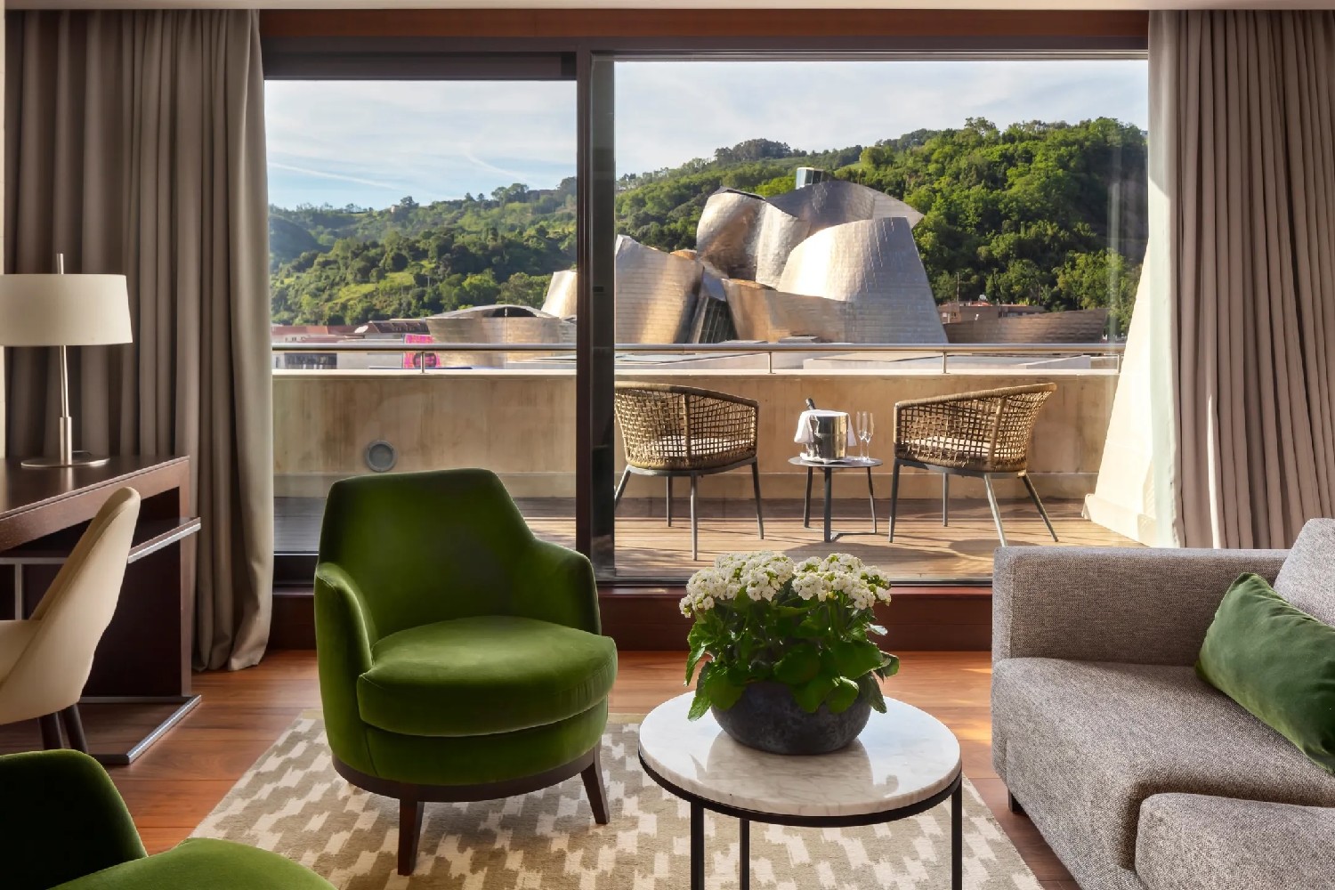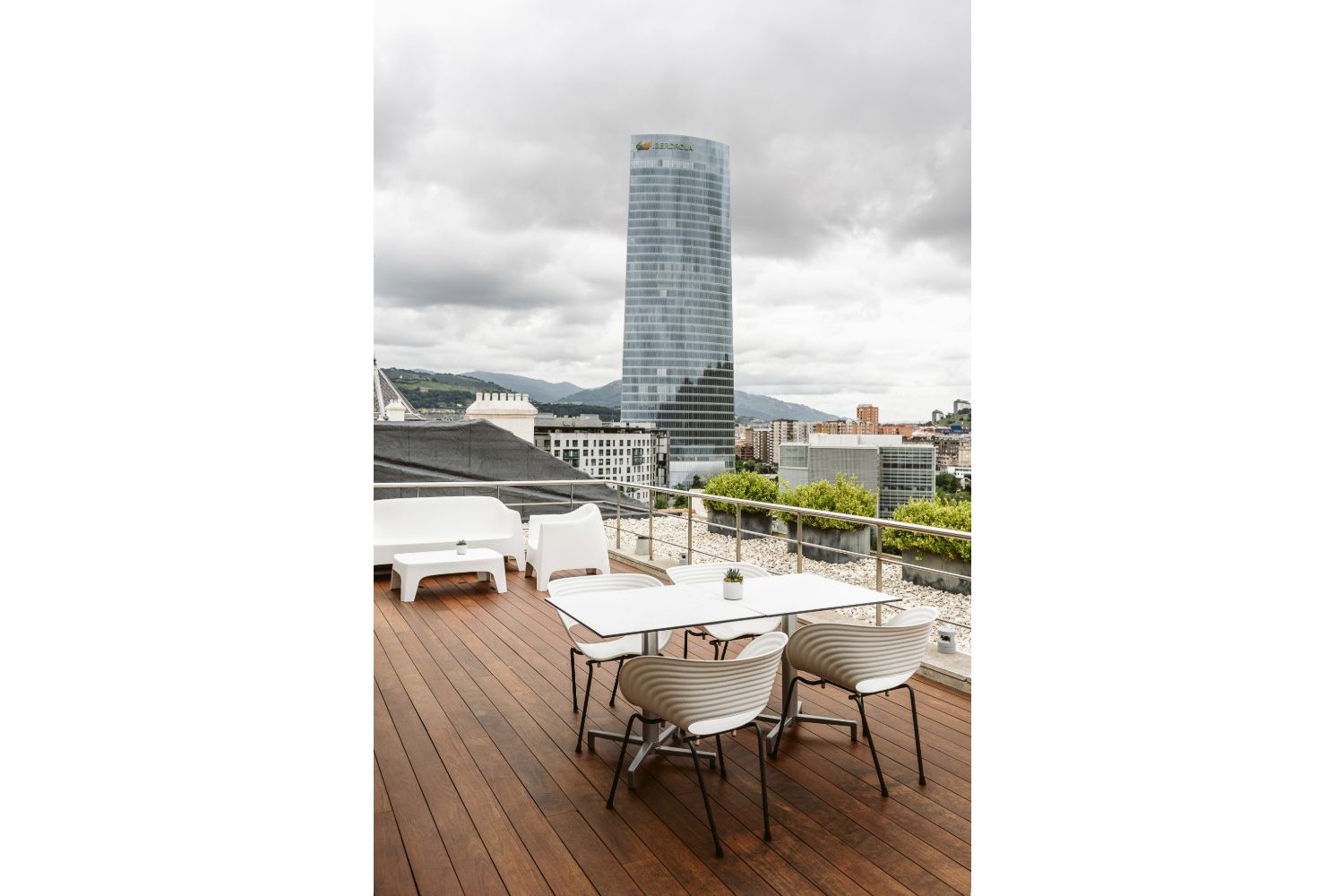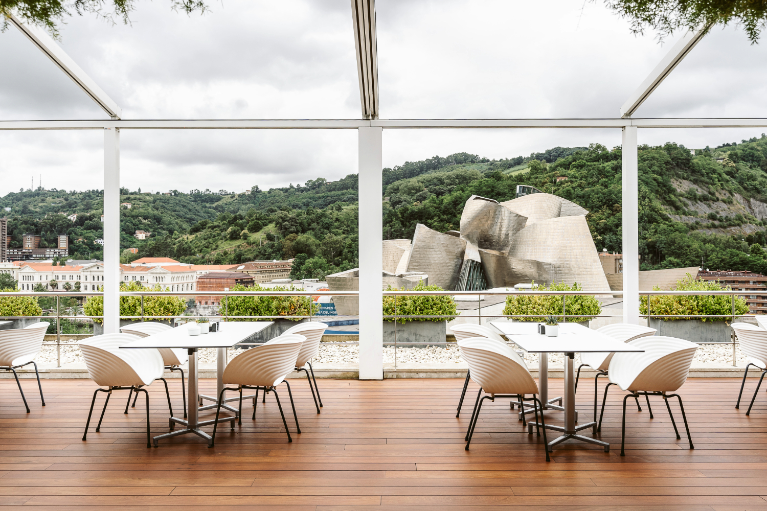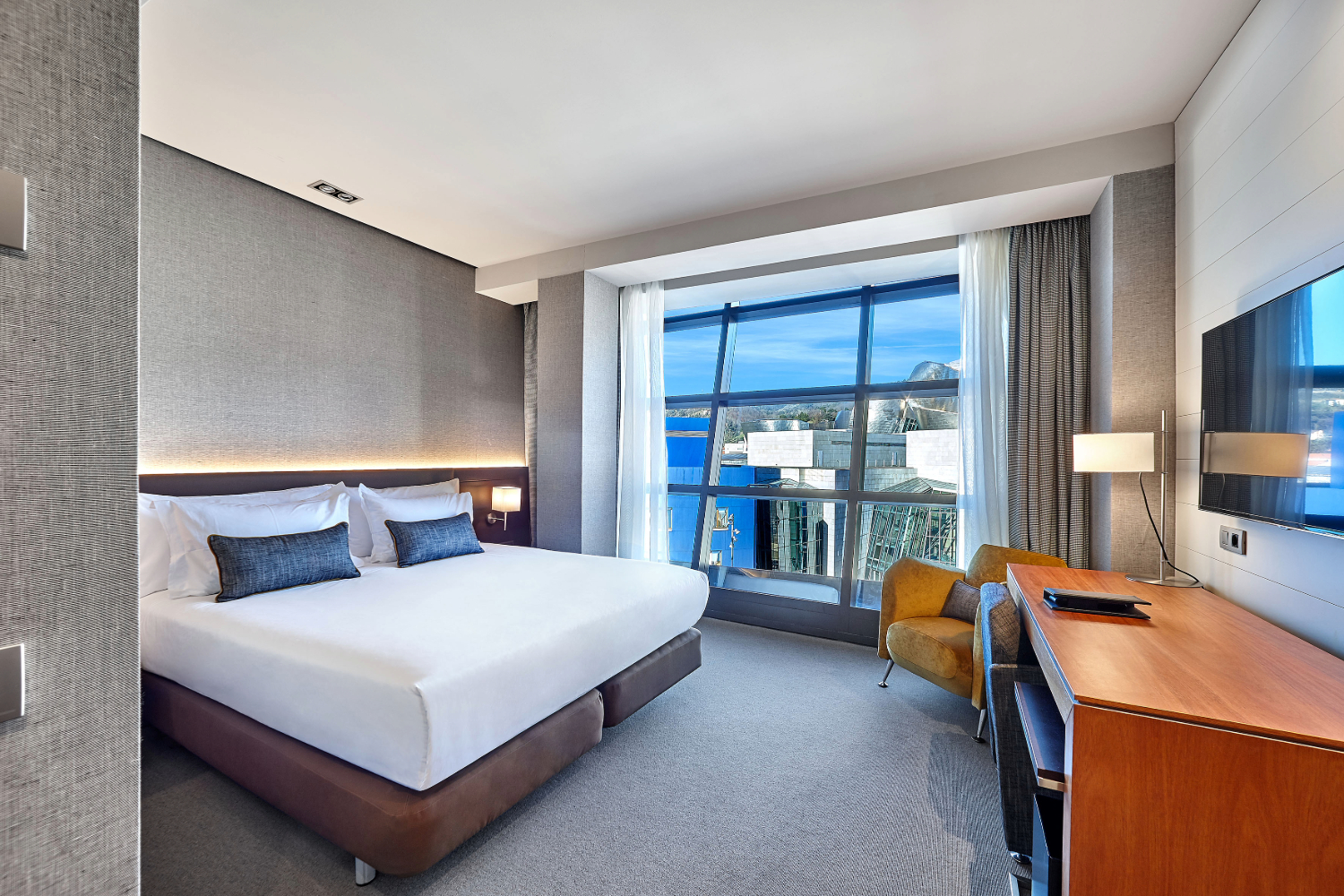 Reforma integral de este emblemático frente al Guggenheim mientras siguió en funcionamiento, respetando las señas de identidad que le dio Javier Mariscal. En la decoración se apostó por una paleta tonal neutra que le da una atmósfera elegante y atemporal y, a su vez, resalta el sello Mariscal a través de elementos particulares: cuadros, muebles, esculturas…Este es el principio de reforma de las 145 habitaciones, ahora tapizadas con textiles de Güell Lamadrid y moqueta de Bentzon Carpets.