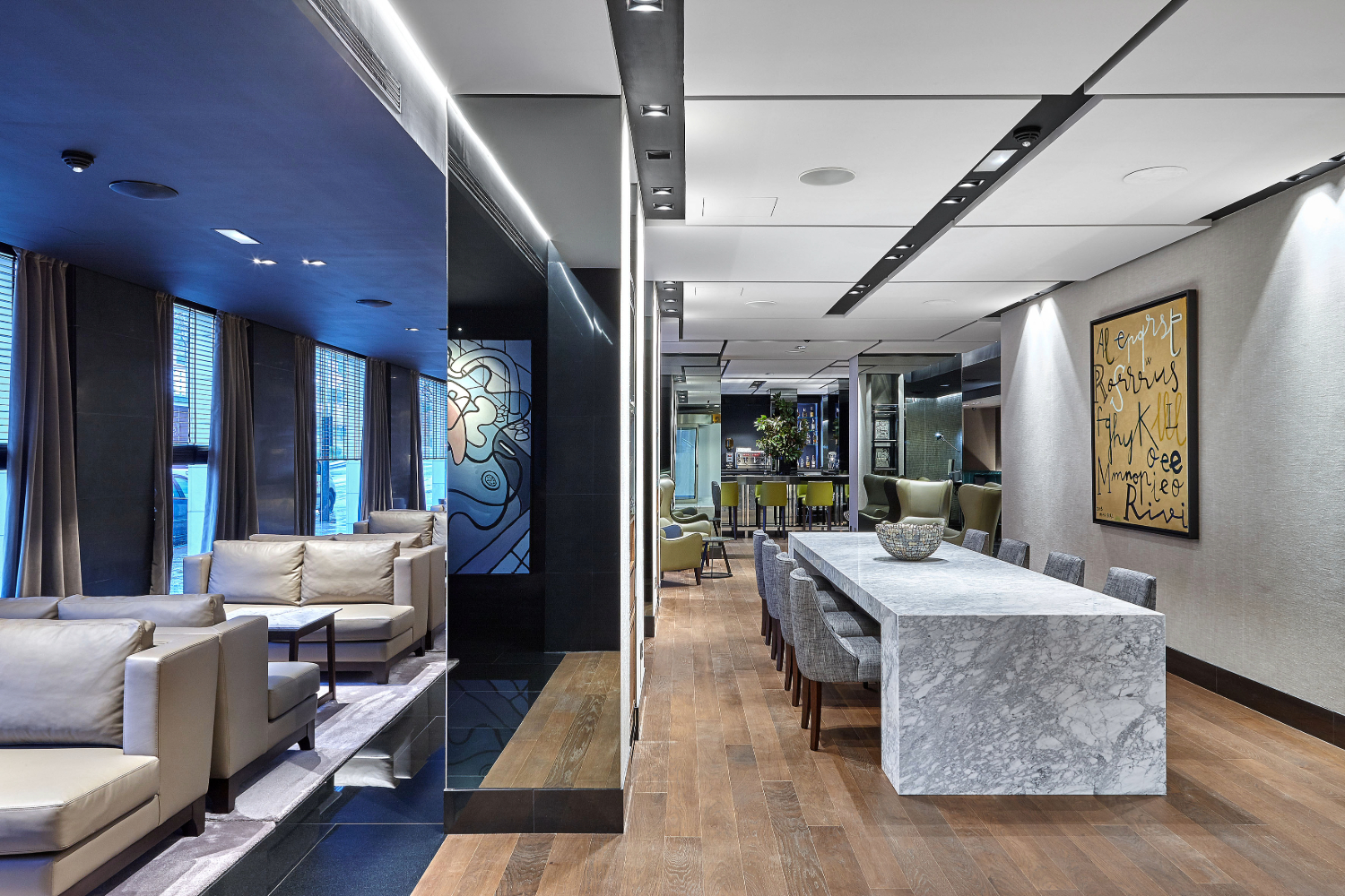 El objetivo era mantener el carácter de edificio con firma y conseguir que no pase de moda. Dentro de este plan, se contempló, entre otras actuaciones, la creación de una nueva zona wellness, con spa, gimnasio y zona de masajes, así como la reforma total de la terraza, la sala de reuniones y el restaurante Beltza, y la transformación del Splash&Crash Bar en un Lobby Bar donde mantener reuniones informales, picar algo o trabajar con el portátil. Siguiendo las nuevas tendencias del diseño, el acero inoxidable convive con el cuero y los tonos pasteles de las tapicerías con los metales. Las paredes se cubren con empapelados y entelados, y en el techo se sigue un dibujo geométrico inspirado en la obra de Mondrian.