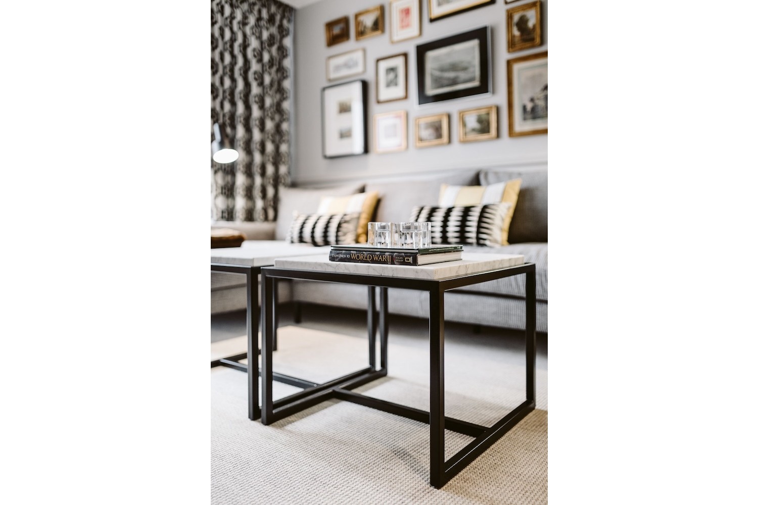 En las paredes se ha fundido todo en un mismo color gris y para el suelo se ha elegido el negro, que junto a la nueva iluminación, da amplitud y mayor protagonismo al mobiliario. La reforma también ha supuesto nuevas telas y piezas de mobiliario de Le Patio, mesas de Leire Ormaeche, telas y papel para el dormitorio principal de Gastón y Daniela y alfombras de Kilombo Rugs.